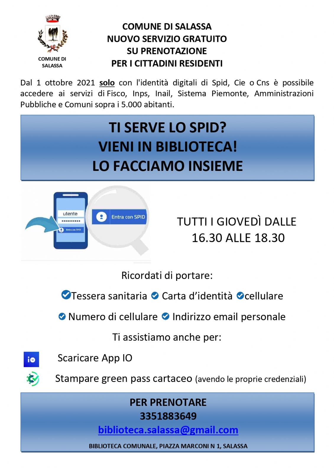 NELLA BIBLIOTECA COMUNALE E' POSSIBILE RICEVERE ASSISTENZA PER IL RILASCIO DELLO SPID