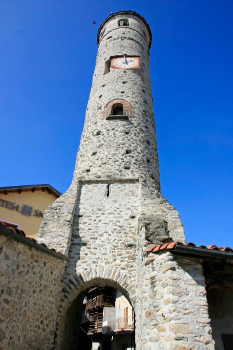 Il ricetto di Salassa conserva la TORRE cilindrica, un raro esempio di porta turrita di accesso. Alcuni dubitano della pertinenza ai ricetti di torri cilindriche, sostenendo la loro appartenenza a sistemi di più energica difesa; tuttavia, a meno che la torre non appartenesse ad un antico “castrum” medioevale, nel XIV secolo non esisteva più a Salassa un centro fortificato definibile castello. Un’altra particolarità è la posizione atipica dell’ingresso, nello spigolo sud, (è l’unico caso riscontrato) che fa presumere quindi l’adattamento del nucleo del paese in formazione ad una Torre preesistente, avvalorando l’ipotesi prima enunciata.